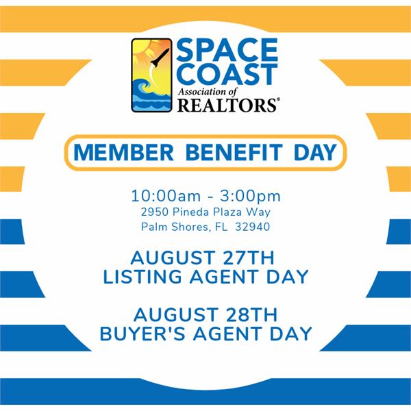 Learn how to get started using all of the resources available to you as a REALTOR® during the Member Benefit Day on Tuesday, August 27 geared toward Listing Agents and Wednesday, August 28 geared toward Buyer's Agents, hosted by the Member Benefit Day Task Force.