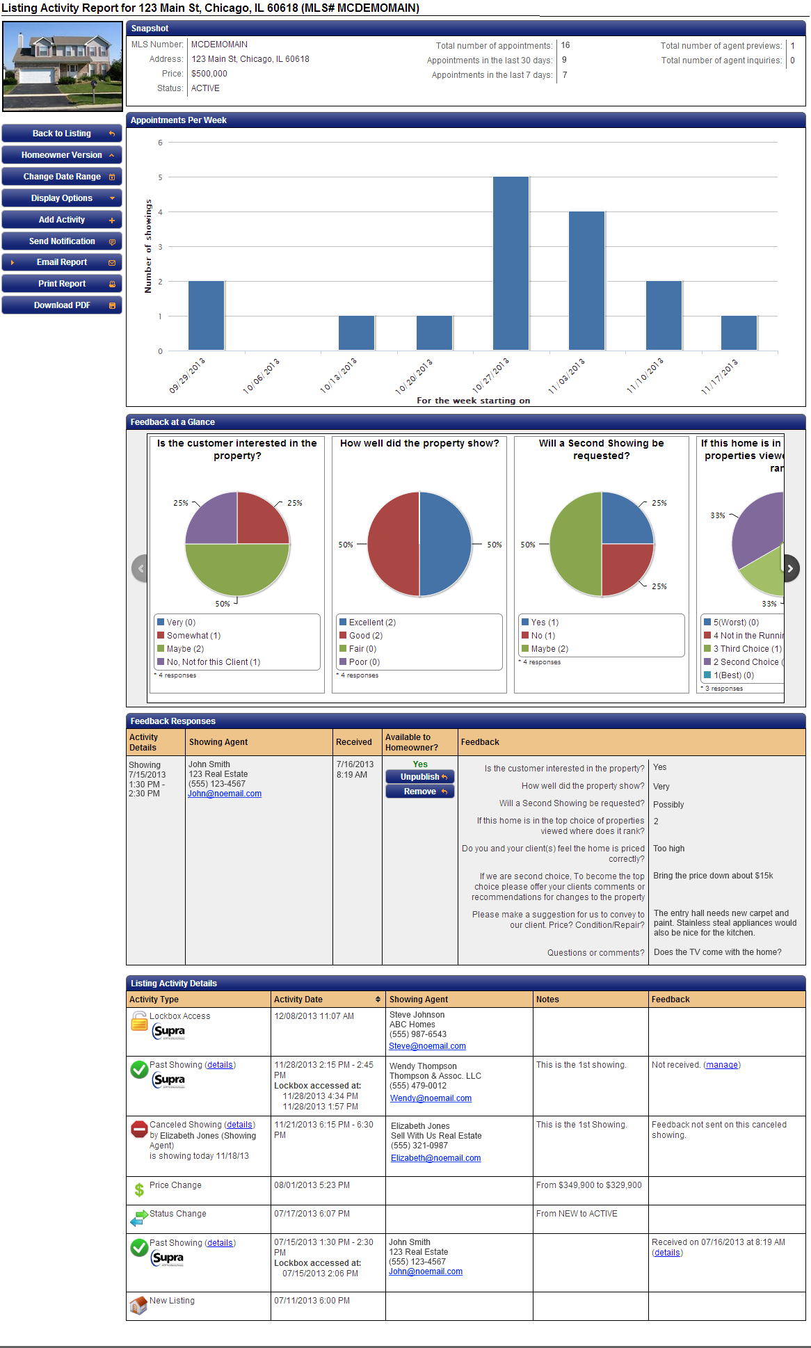 Once this has been set up, you will begin to see Supra lockbox access activity within the Listing Activity Report, 24 hours after adding the lock box serial number to your listing.