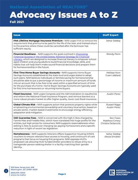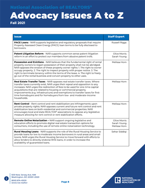 Advocacy Issues A to Z to learn about everything the Realtor Party works on on a regular basis.