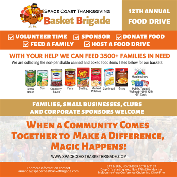 We are excited to announce our partnership with the 12th Annual Space Coast Basket Brigade